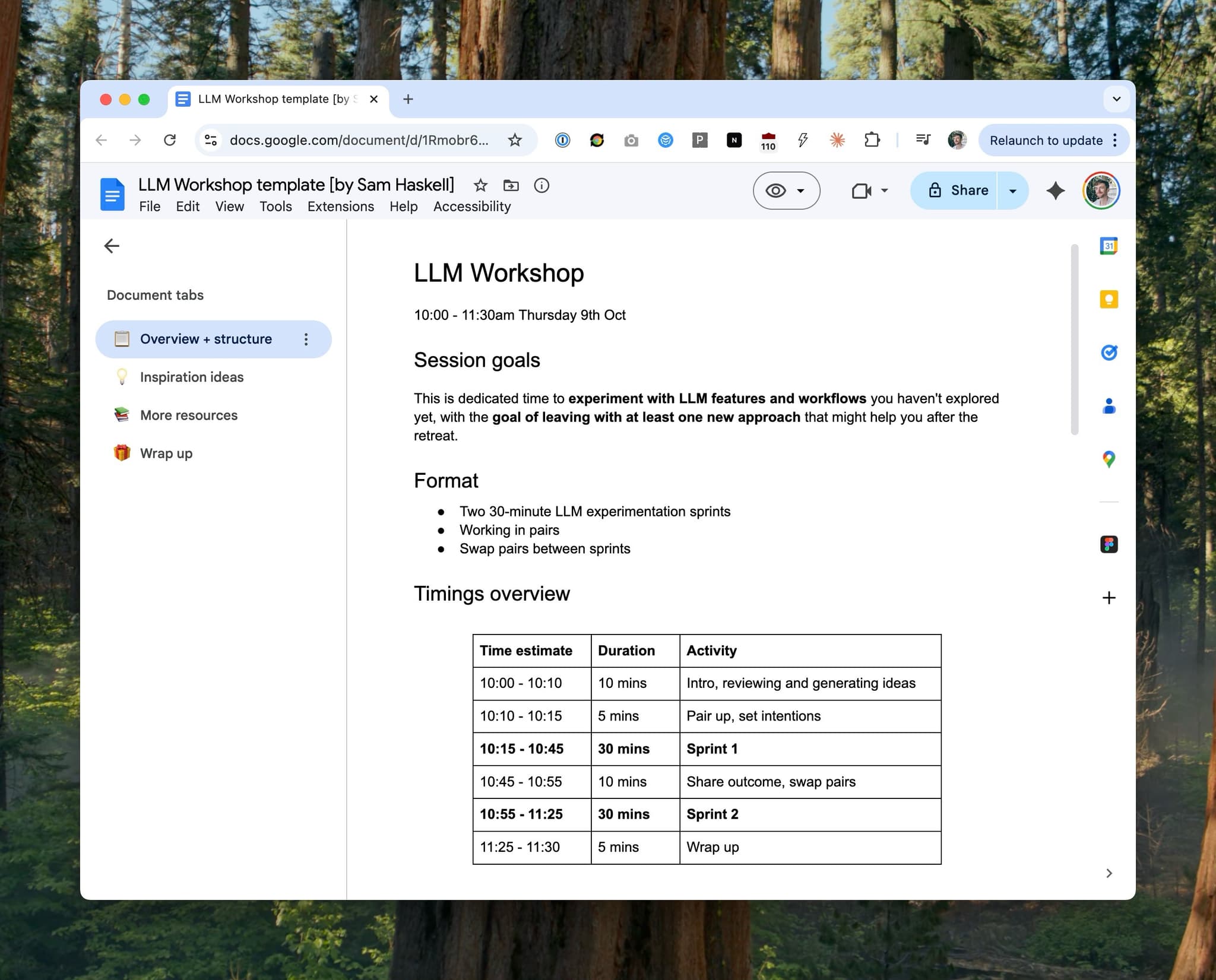 Sam Haskell recently ran an LLM workshop at the 80,000 Hours team retreat. He's kindly shared the template he used.